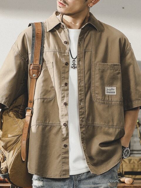 アメリカンワークシャツ | メンズ | 半袖 | ゆったり トップス | カジュアルシャツ